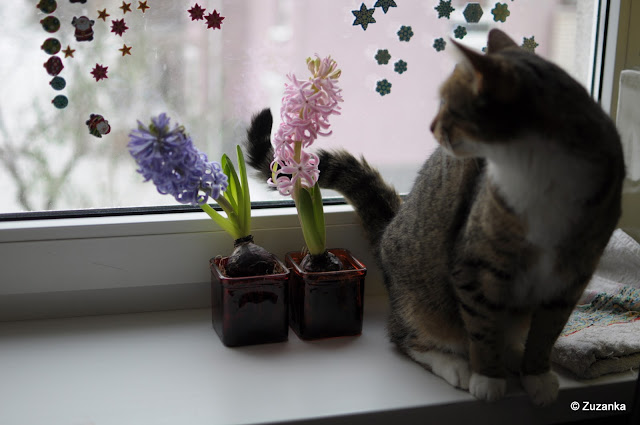 PS Dekorację okna wykonał Maj, samodzielnie. Miałam szczegółowy plan przygotowania całego kalendarza grudniowego oczekiwania, ale wyszło jak zwykle - przeczytaliśmy "Pana Brumma obchodzącego Boże Narodzenie", ozdobiliśmy okna, TŻ próbował metodą łagodnej perswazji wyciągnąć od nieletniej treść listu do Mikołaja, poszliśmy na Festiwal Rzeźby Lodowej i na lukrowanie pierniczków w Paderewskim i na tym się wyprztykaliśmy z grudniowych zwyczajów. A czekoladek z kalendarza adwentowego Maj nie chce jeść. I tak, o.