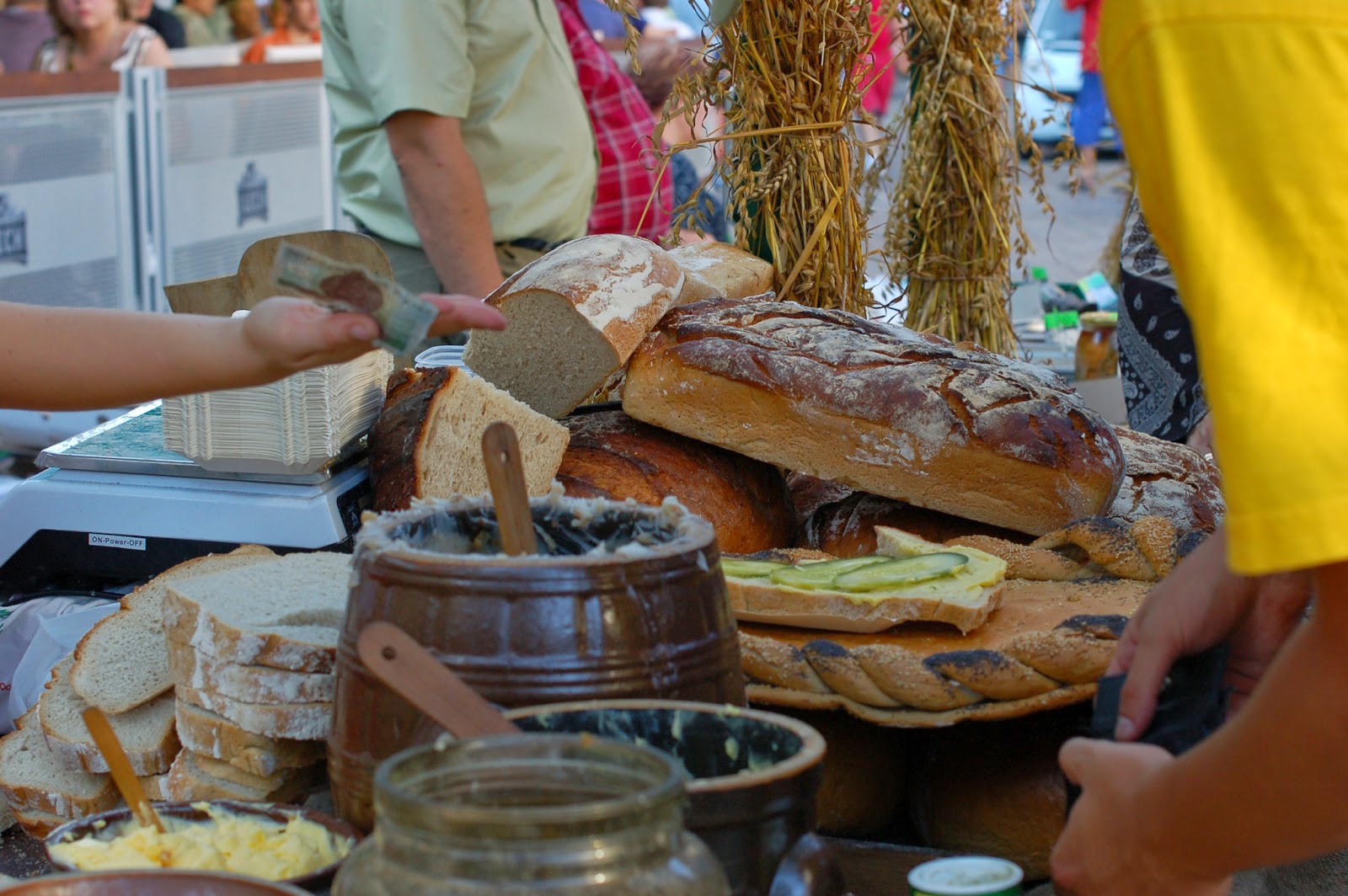 Sery korycińskie, sery owcze, mnóstwo wyrobów z miodu i ziół (od klasycznego w słoiku, na piwie i kosmetykach kończąc), gliniane i wiklinowe naczynia, lokalne wędliny, trochę przetworów z warzyw i owoców (może w piątek było więcej, wczoraj dość marnie - ten teren mnie trochę rozczarował, bo jednak kilka firmowo opakowanych słoików z sałatkami warzywnymi to biedne takie jest; wiem, że nie mamy oliwek, ale są piękne owoce i warzywa, z których można cuda robić), pieczywo, smalec i kiszone ogórki. Rok temu było biedniej, bardziej jarmarcznie, w tym roku o wiele lepiej i bardziej spożywczo. Szczególnie ujął mnie namiot hotelu Andersia, serwującego swoje potrawy ze srebrzystych podgrzewaczy przez kelnerów w strojach odświętnych, ale nie wiedzieć czemu i tak TŻ ustawił się w kolejce do straganu obok, gdzie kiełbaski z grilla serwowała kawiarnio-restauracja Pod pretekstem.