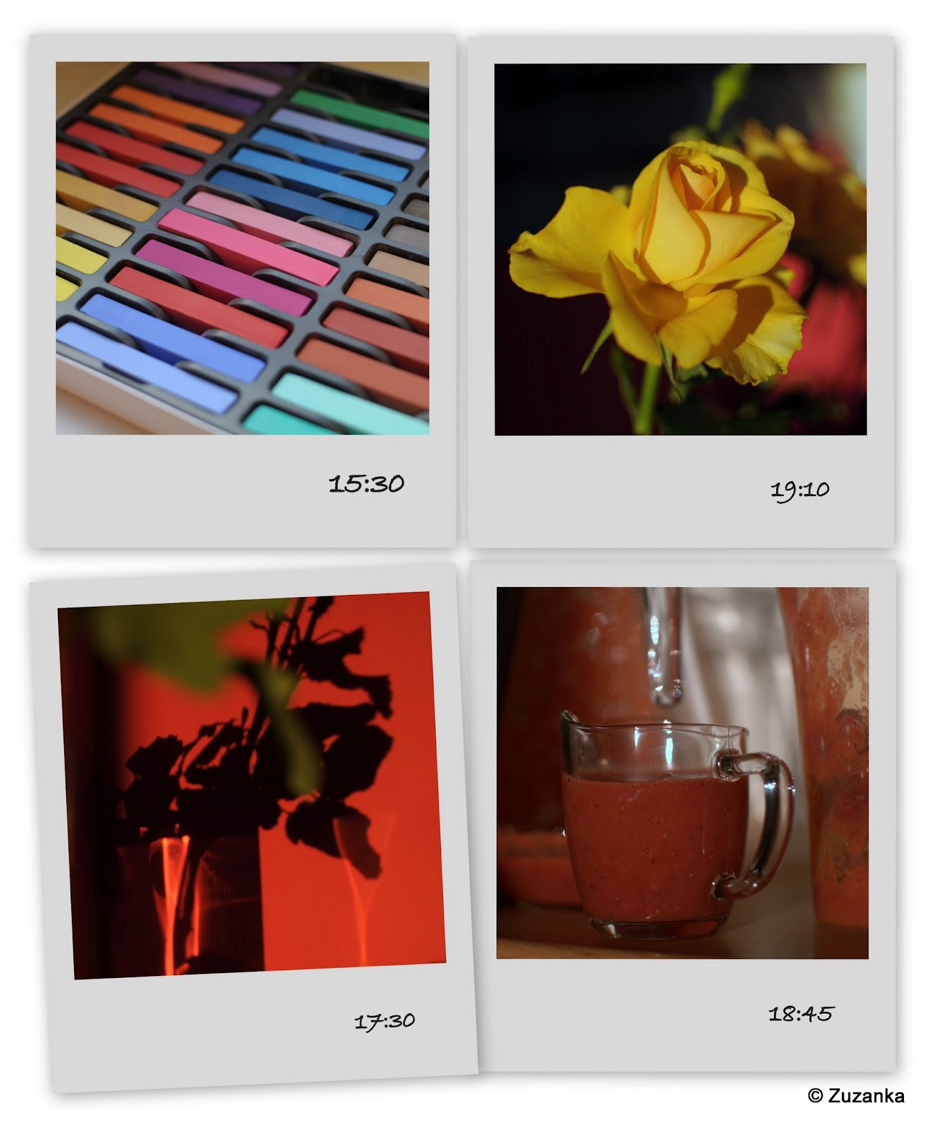 Rano było szaro. Mokro, kałuże, mżyście. Ślimaki na krawężniku, te sprawy. Ale dzień dopiero wstawał. Tęcza w Lidlu, pachnąca żółta róża z magicznym cieniem wpadającego przez kuchenne okno zachodzącego słońca. I ten kawałek lata, za którym tęsknię najbardziej - świeże truskawki. Na jutro czekają na mnie złote morele.