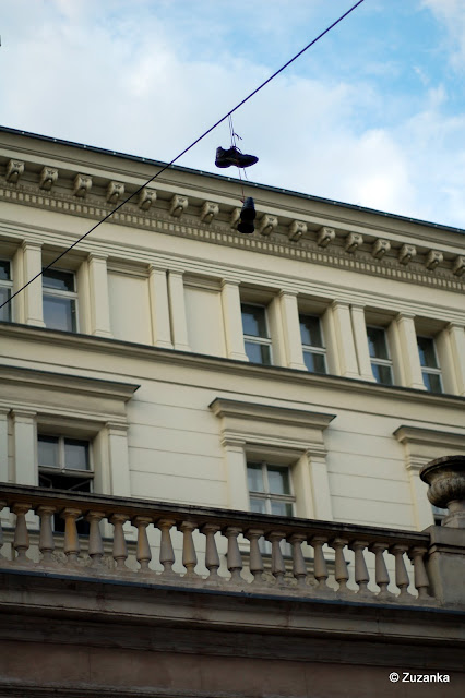 I tu studenci kończą sesję, bo mam wrażenie, że obuwie na trakcji tramwajowej pojawiło się zdecydowanie w ramach jakiegoś uzewnętrznienia radości.