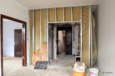Na razie idzie w stronę wzrostu entropii, ale powoli szala przechyla się w kierunku zaczątków ładu. Ekipa usunęła część śladów po poprzednich właścicielach - podłogi, kafle, sufit i ściany z plastikowych paneli sidingowych. Stolarka zmieni kolor z ciemnobrązowej na białą.