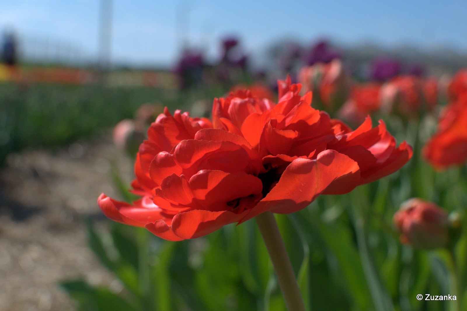 Nie trafiłam niestety na kwitnące tulipany nowej odmiany 'Aleksander Kwaśniewski', na polach kwitła tylko 'Jolanta'. Jakby mi ktoś wyhodował odmianę nazwanym moim imieniem, to bym przyjechała, słowo! W każdym razie stanęłam dzisiaj na serio przed dylematem - czy wolę tulipany pełne, papuzie czy postrzępione. Jestem cała dylematem.
