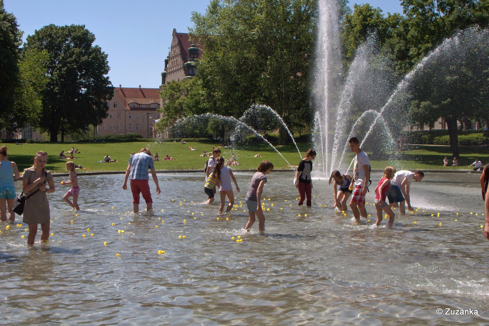 W sobotę Cropp zorganizował akcję reklamową, w której chodziło o to, żeby złowić kaczkę z fontanny. Zapowiedź była szumna, kaczki niknęły w dużej fontannie (spodziewałam się całej fontanny kaczek, niestety). Maj złowił kilka kaczek oraz dokonał strat na odzieży. Ale wyschła. Odzież.