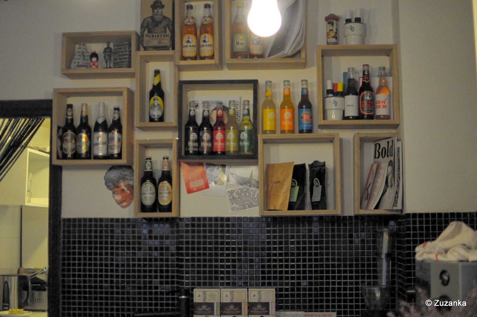 ... kawa i świetne kanapki na Taczaka 20, dla mnie łosoś z kaparami, rukolą, ogórkiem i lekko kwaśnym sosem, dla TŻ grillowana kanapka z kurczakiem, pomidorem i zieleniną, którą wyjadał mu Majut, na zmianę informując, że pysne oraz że smakuje jak siano ("a gdzie ty próbowałaś siana, kochanie?").  Taczaka 20 to zagospodarowana brama, malutka knajpka na dosłownie kilka stolików z letnim potencjałem na więcej na ulicy. Adapter z płytami, pod sufitem rower, Fritz Kola, słychać "Diamonds&Pearls" Prince'a, certyfikowane rogale, tort bezowy z granatami i specjalność zakładu - Przysmak Generała Taczaka (czekoladowe ciasto, mascarpone, karmel). Gwarnie, zacisznie i miło. Jak na spotkaniu, na którym wprawdzie się nikogo nie zna, ale za chwilę można poznać.