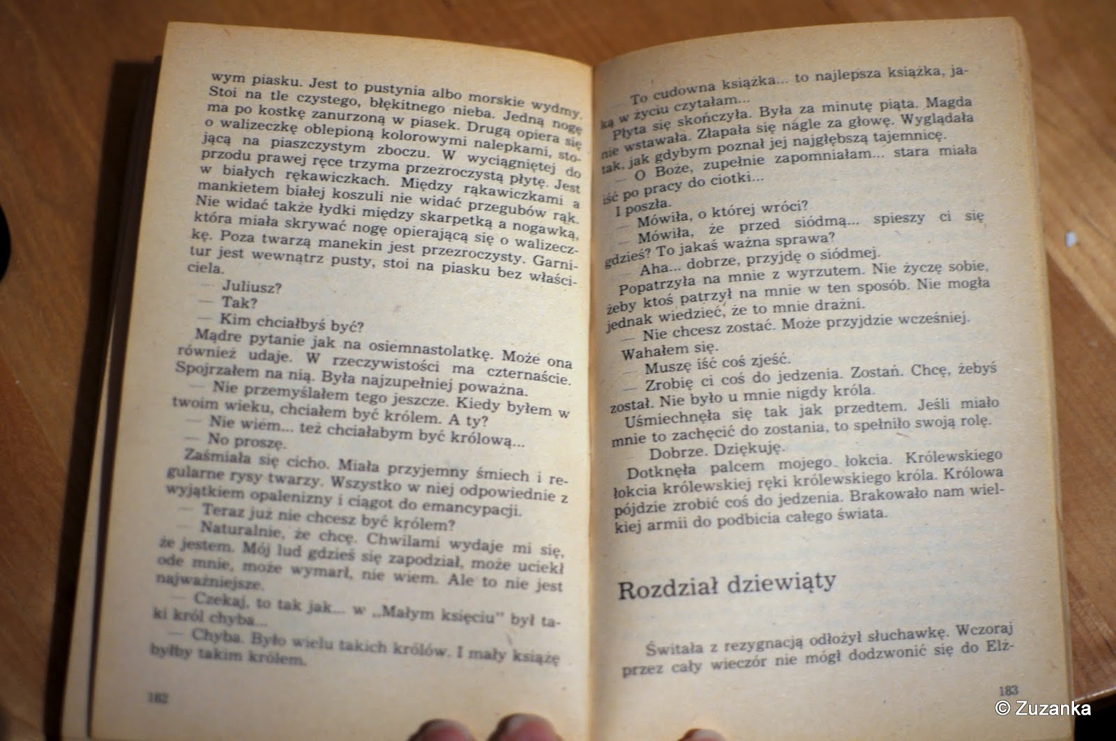 Sporo się w tle dzieje, ale najbardziej mnie ujęła inwentaryzacja płyt pewnej 18-latki, córki dyplomaty. Pink Floyd, Queen, Bee Gees, Bob Marley, King Crimson, Pink Floyd. Nad inwentaryzacją trwa rozmowa o sensie życia, "muzyka przybrała teraz charakter lirycznego lęku", a "Wish You Were Here" jest lepsze niż "Dark Side of the Moon". Takie urocze, że aż pozwoliłam sobie zacytować: