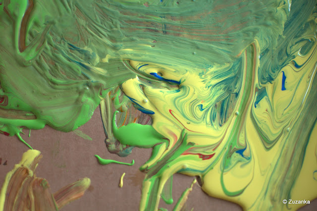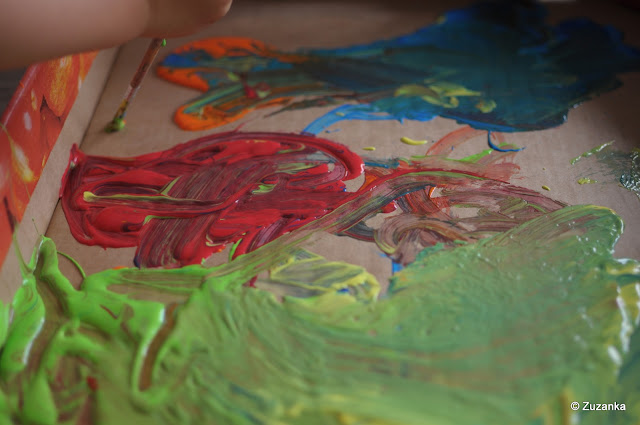Miałam się pochwalić, że przygotowałam nowe zdjęcia do powieszenia w miejscu publicznym, ale - jak to ja - zinterpretowałam opacznie wymiany zakupionych ramek i zamiast wysłać TŻ do labu w celu powrotu z odbitkami 50x70 cm, bo takież ramki kupiłam, otrzymałam 70x100cm. Pół sukcesu, wszakże jeden wymiar się zgadza. Ale i tak mi przykro, bo spodziewałam się po sobie, że będę umiała te dwie rzeczy bezbłędnie skorelować. Cóż. Tymczasem więc pochwalę się córką-artystką.