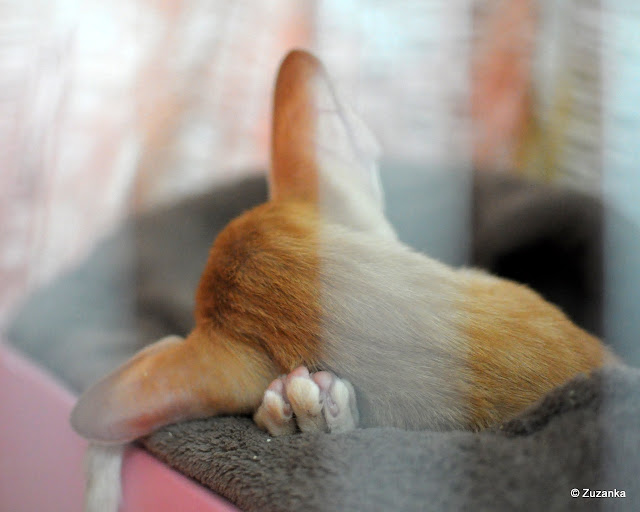 I pomiędzy: rozumiem chęć zapewnienia kotom bezpiecznego i chociaż nieco wyciszonego schronienia, ale owijanie klatki grubą, półmatową folią słabo się sprawdza, jeśli gawiedź chce kota sfotografować. Siatka, kraty - tak, z tym da się coś optyką zrobić. I flesze. Pierwszym obowiązkowym punktem w instrukcji każdego najmarniejszego telefonu, automatu i aparatu powinna być umiejętność wyłączenia lampy błyskowej. Tak, wiem, wtedy by się okazało, że w słabych warunkach oświetleniowych nie da się zrobić dobrych (czytaj: ostrych i kolorowych) zdjęć czymś mniej wyrafinowanym zrobić w ogóle. Nie, nie podoba mi się zachowanie pani, która błyska w oczy kotu i z chichotem wyjaśnia, że wie, że bez flesza, ale - hihi - nie umie wyłączyć. Pani pokazałam, ale wszystkim nie pokażę.