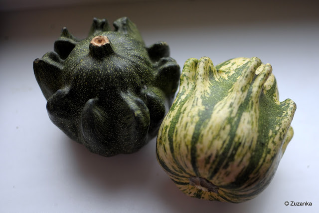 W Halloween najbardziej lubię dynie. Metalowa łyżeczka do robienia kulek z melonów i ostry nóż; najzabawniej się wycina w małych dyniach dekoracyjnych i tych takich z purchlami, bo podświetlone dają uroczy efekt. Nie dałam rady natomiast przeciąć skóry na grubych, przypominających patisony dyńkach. Nic to, poczekam, aż zgniją w całości.