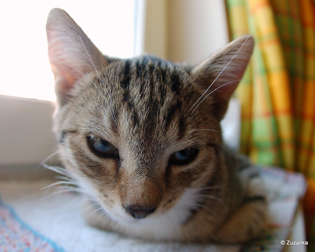 [1] Okazało się, że mamy zachomikowany cały zapas futrzanych myszy (pewnie przy okazji jakiegoś sprzątania) na dolnej półce regału. Burasy znalazły i roznoszą po całej kuchni, siejąc zniszczenie. Głównie myszom siejąc. Wazon z różami żyje, ale wyemigrował na balkon, bo jak obgryzanie połowy płatków im nie szkodzi, tak wsadzanie najpierw małej łapy, potem całego kociego ryja do wazonu oraz robienie z łodygi katapulty - i owszem.