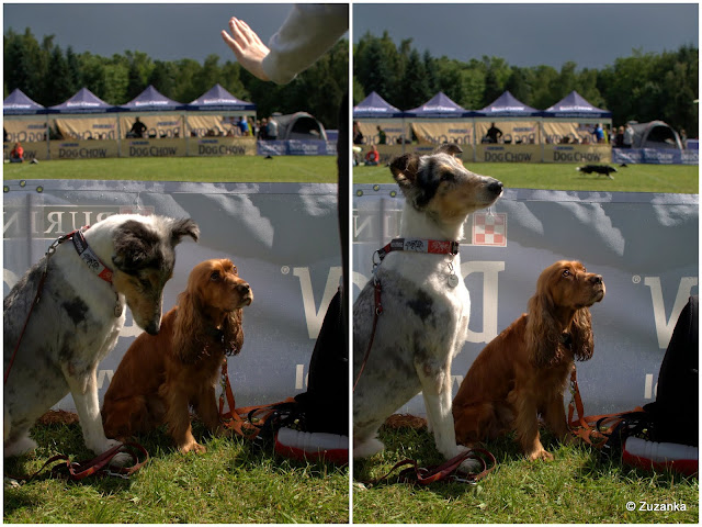 Tym razem (bo poprzednim nie) trochę padało, przez co nagle znaleźliśmy się w ulewie w namiocie z Holką i Billim. Holka co jakiś wychodziła sprawdzić, czy jeszcze pada. Padało, więc wracała i otrząsała się radośnie. Okazało się, że zarówno Holka i Bill łapią frisbee, ale Holka oddaje, a Bill niechętnie. Niebieska wata cukrowa, mokra trawa i huśtawki na Cytadeli.