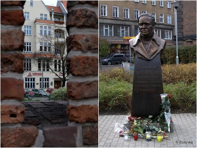 Zamek zamkiem, schody i parczek dalej nieużyteczny. Za to skwerek przy murach obronnych, zaraz obok Masztalarskiej, od niedawna nosi nazwę skweru im. Romana Wilhelmiego. Wcześniej obecność poznańskiego aktora wspominała tylko tablica na ścianie przy Galerii Scena, teraz pojawił się też pomnik. Świeżutki, odsłonięty 3 listopada.