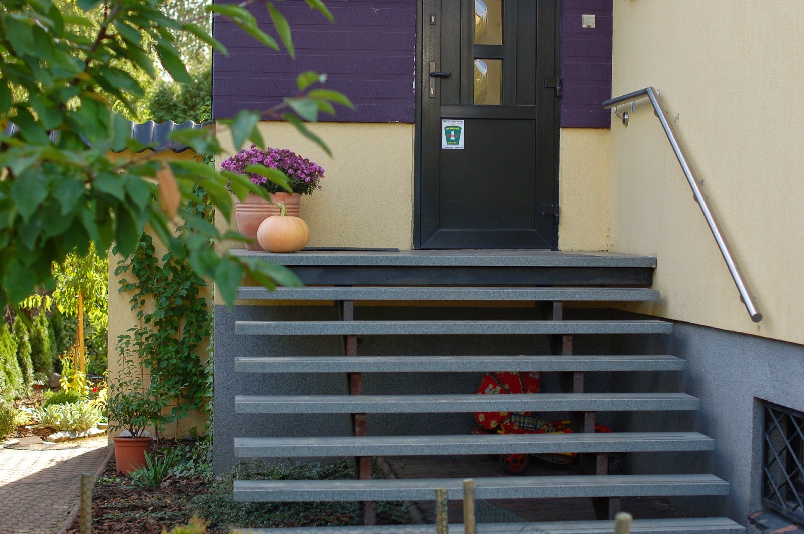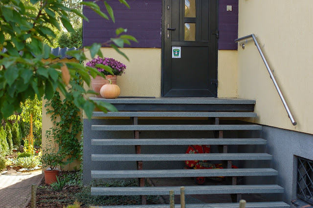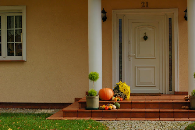 Wolę jednak te domy, które płot traktują jako wizualny element krajobrazu albo wręcz po skandynawsku rysują tylko cegłą bądź drewnem przegrodę między ogrodem a chodnikiem. Jakoś tak milej. Zwłaszcza że sezon na dynie, a nic tak malowniczo nie rozłoży się na schodach jak mała kolekcja tych kolorowych, w jesiennych barwach.