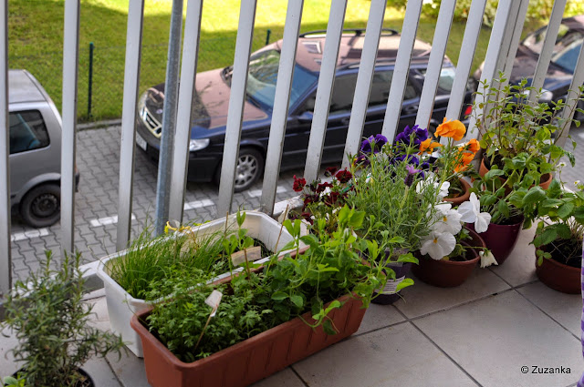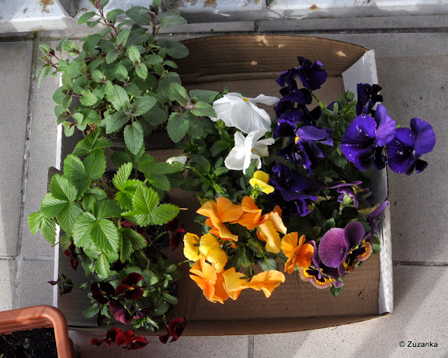 16 kwietnia, zasiewy wzbogacone o sklepowe bratki, poziomkę (z zawiązkami kwiatów), kocimiętkę (olewaną przez trzodę) i rozmaryn.