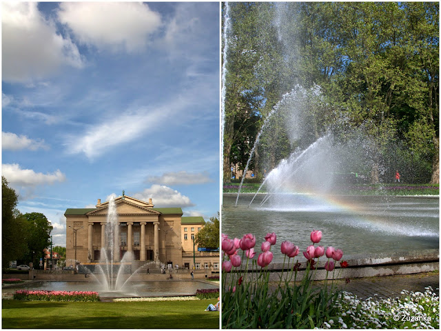Mogłaby być zodiakalnym wodnikiem, bo ze wszystkich żywiołów najbardziej lubi wodę. Zabieram więc tam, gdzie woda jest, nawet jeśli nie można się kąpać (wyjątkowo zimny maj, jak co roku, gdzie te 30 celsjuszów obiecane?). Pod Teatrem Wielkim widać, że miastu potrzebna jest trawa, na której można położyć się i patrzeć w niebo. Bardzo potrzebna.