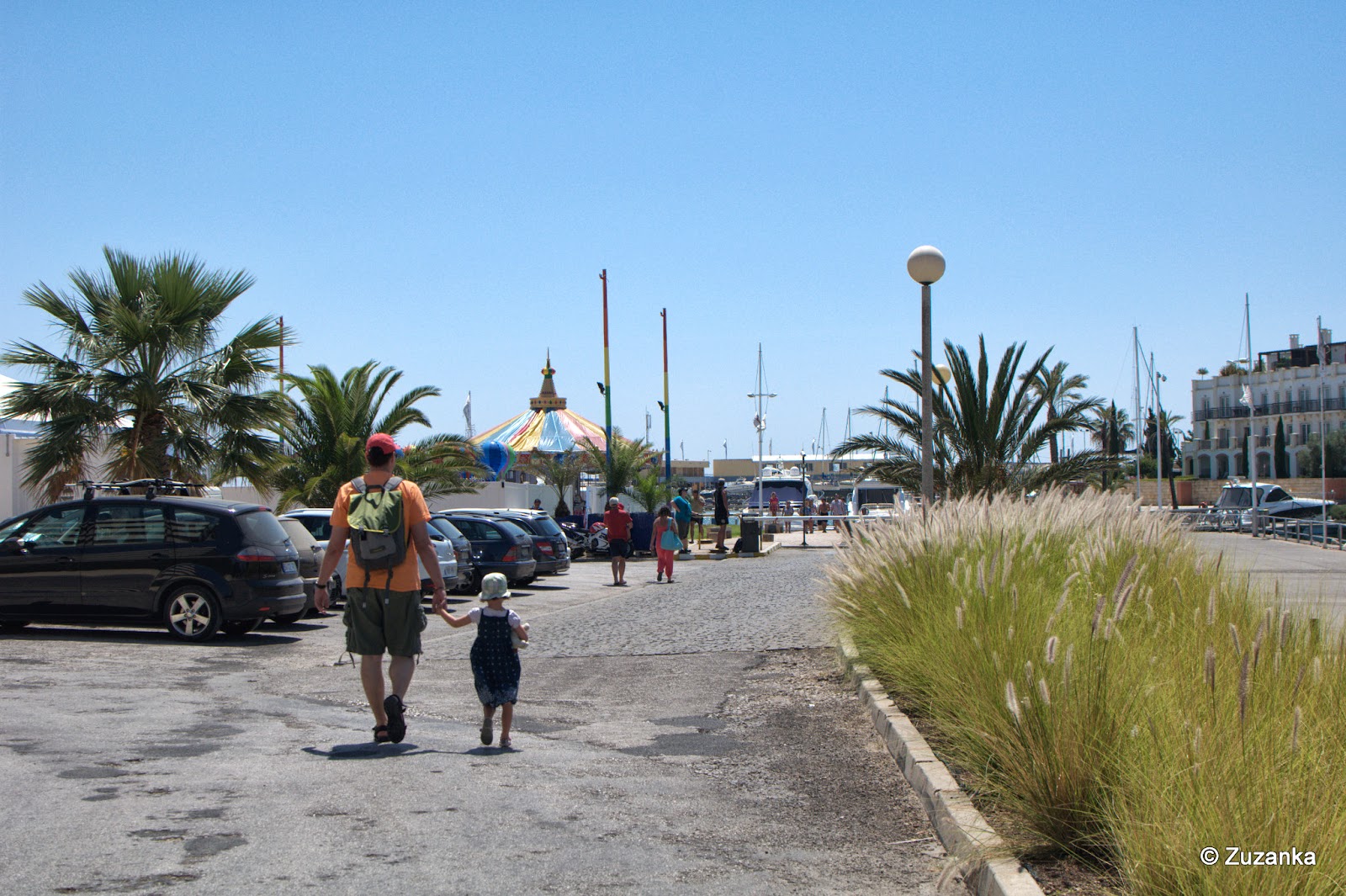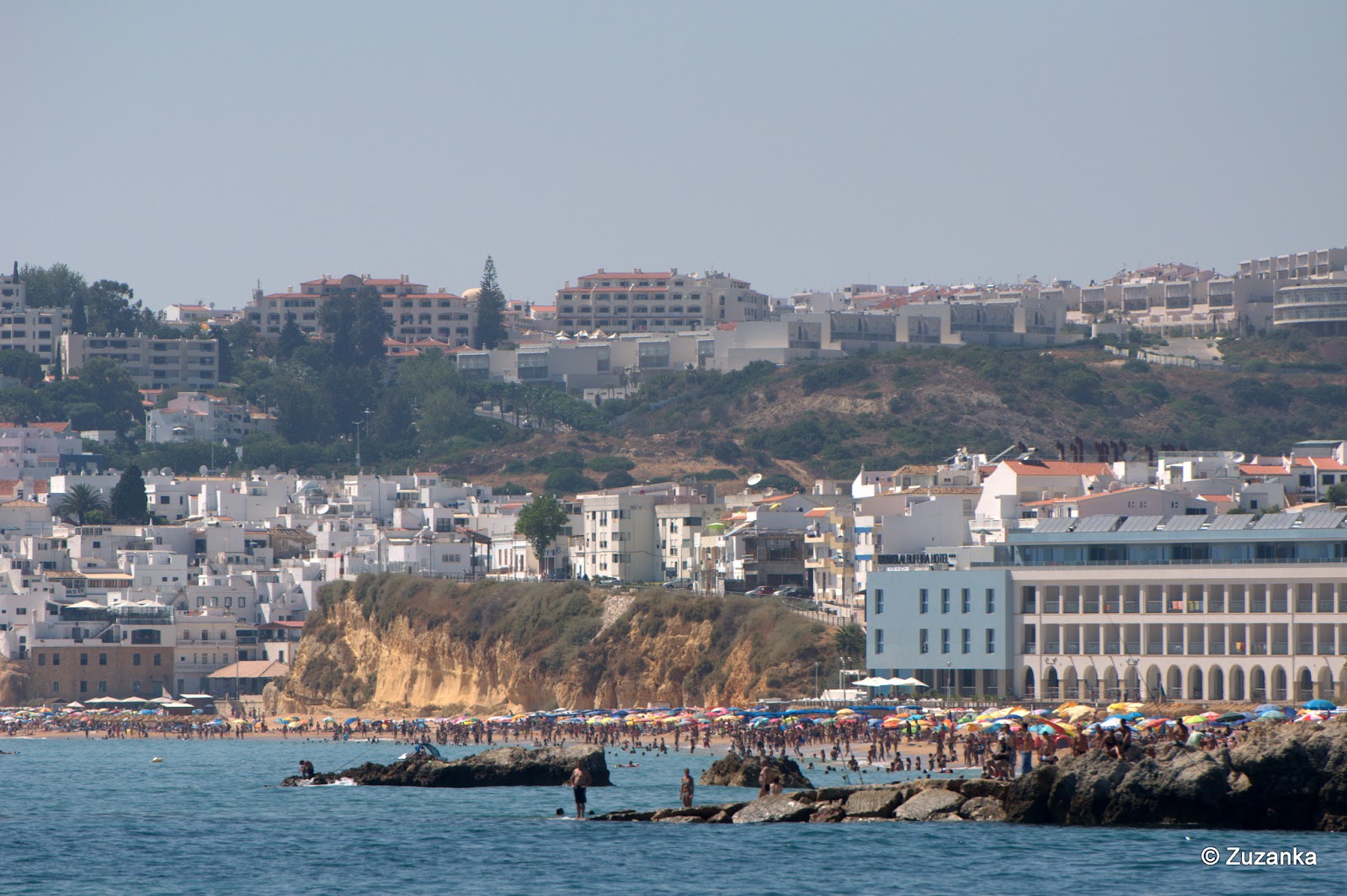Lubię co jakiś czas robić coś typowo zarezerwowanego dla turystów. Tak zupełnie bez zawstydzenia. Mimo protestów Maja pojechaliśmy na rejs statkiem (Ale ja nie chcę płynąć statkiem! To my samy popłyniemy, a ty zostaniesz. Nie chcę zostać!); protesty oczywiście skończyły się w momencie wejścia na pokład, gdzie już było świetnie. Maj nie był najmłodszy, były też takie noszone na rękach (nie, nie pływały jet boatem, w przeciwieństwie do Maja; i naprawdę lubię, kiedy dziecko moje doskonale rozumie komplementy pod swoim adresem - tym razem niña brava od młodej Hiszpanki, zachwyconej radością Majuta na motorówce). Płynęliśmy z Vilamoury do Albufeiry, z przystankiem w zatoce przy skałkach i jaskiniach, a potem z powrotem. Wyznam z niejaką Schadenfreude, że to nikt z naszej trójki wymiotował całą drogę do czarnego worka. Wyznam też, że najtrudniejsze było powstrzymanie dziecka od wydawania odgłosów naśladujących, bo wprawdzie wymioty nie są tak zaraźliwe jak ziewanie, ale Maj potrafi wykonywać takie dźwięki z perfekcją.