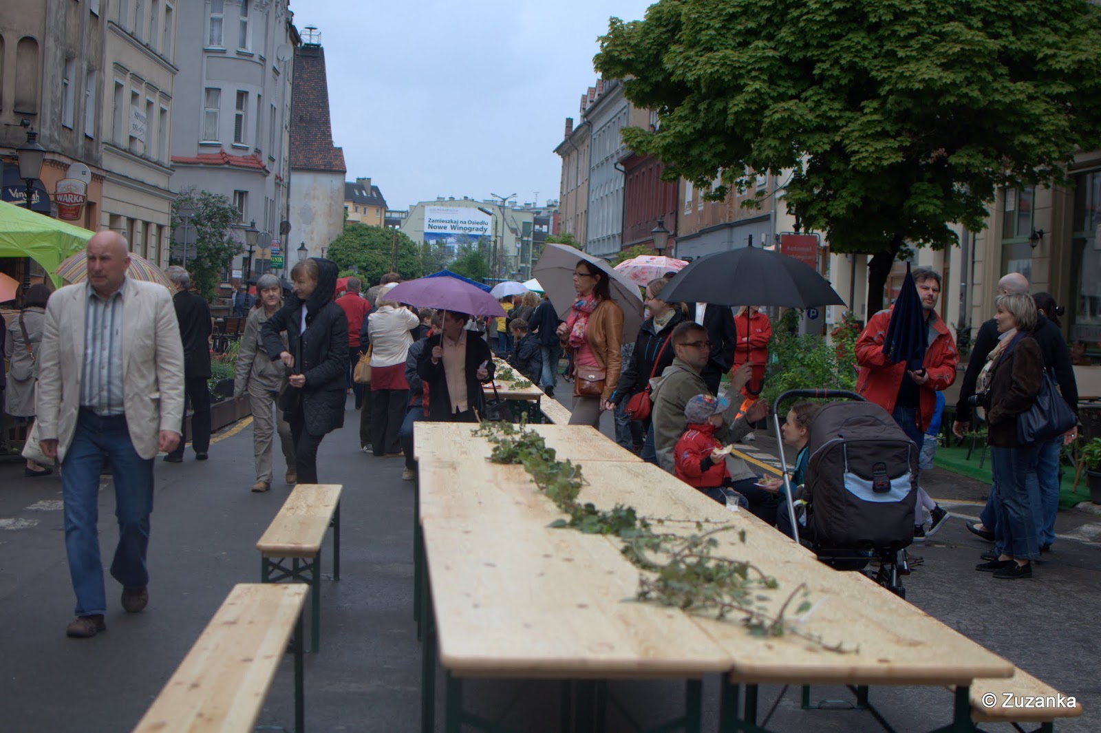 Bardzo lubię uliczne jedzenie. Niekoniecznie w postaci cieknącego kebaba z surówką z kapusty kiszonej (z wiadra), ale lokalne, zrobione ze świeżych składników, unikalne i specyficzne dla danego miejsca. Wiem, pod tę definicję niekoniecznie łapie się zapiekanka z Mostu Teatralnego, ale zwyczajnie mam sentyment do tego miejsca. W poprzedni weekend ucieszyłam się bardzo, że na ulicy Żydowskiej pojawiły się stoły, scena, stragany i klimat z okazji święta ulicy [link nieaktualny - 2018]. Wszędzie było pełno kropel, bo mżył deszcz całe przedpołudnie, ale podobało mi się, że można na ulicy zjeść bajgla. I zupę z soczewicy. I że nagle pojawiło się mnóstwo ludzi, również starszych (a nie tylko hipsterów).