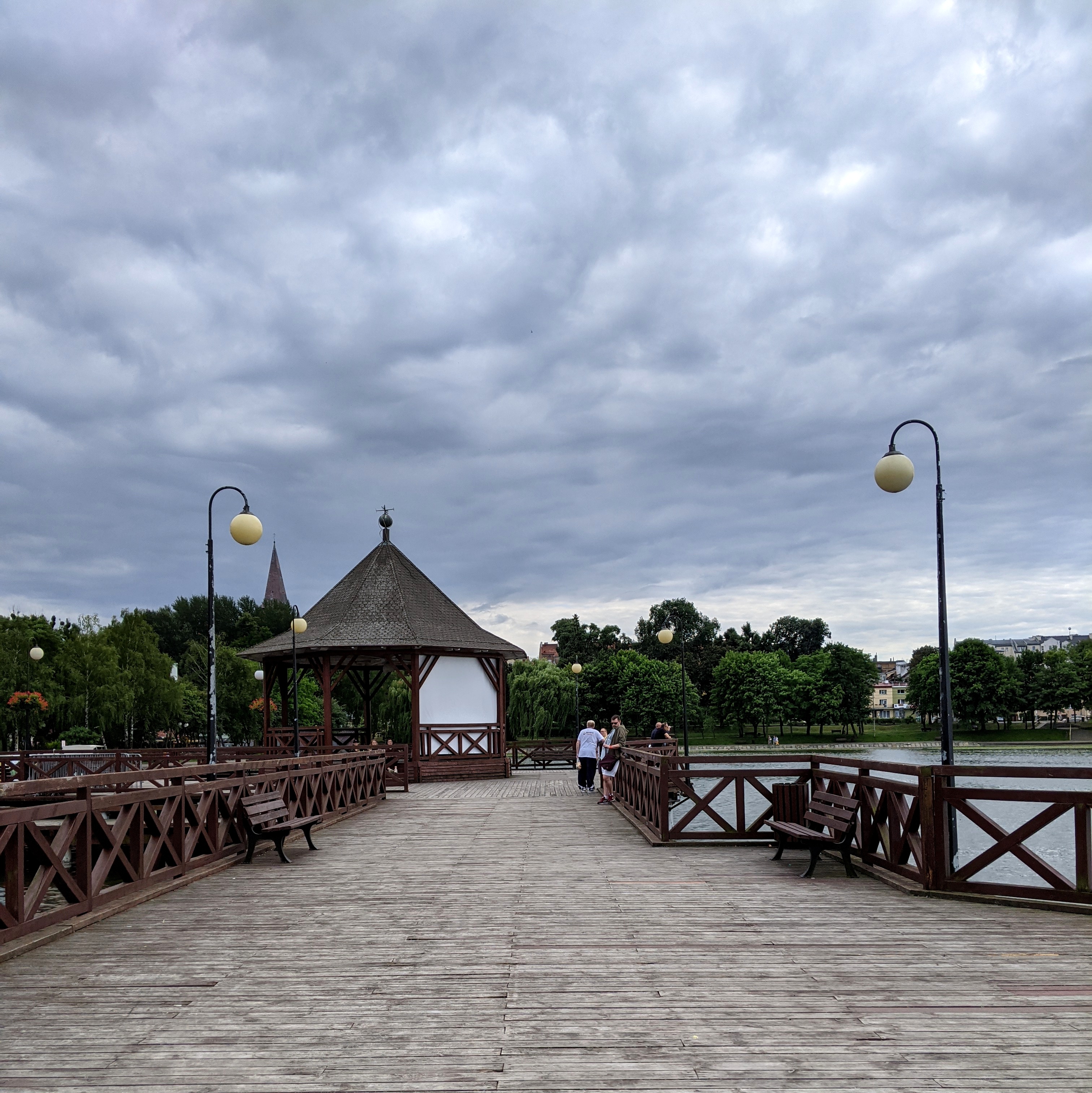 Sama Ostróda jest urocza - kompaktowa, a odległości spacerowe, molo przepiękne i klimatyczne, deptak takie bardziej Mielno, marina miała w pakiecie chmurki, a przy Wieży Bismarcka było - na szczęście o wczesnej porze mało aktywne - wesołe miasteczko, które zignorowaliśmy. Mnie oczywiście najbardziej się podobał dworzec PKS.