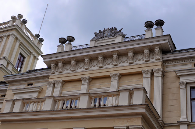 Wprawdzie mieliśmy jechać do Owińsk, ale kiedy dotarliśmy do Parku Orientacji Przestrzennej, okazało się, że jest w nim impreza zamknięta akurat wtedy, kiedy jest otwarty dla ludności. Smuteczek, zwłaszcza że otwarty jest dwie godziny w dni robocze, a 4 - w sobotę. Nie wyszło źle, bo po drodze zareklamował się świeżo odremontowany Zamek w Biedrusku. Od 2009 aktualni właściciele doprowadzili budynek do stanu prawie że idealnego - meble z epoki, malowane ściany, złocenia i żyrandole. W parku jeszcze trwają prace, jest rokujące gazebo ("ŚMIERĆ myślał, że gazebo to rodzaj antylopy"), fontanna i schodki do ogrodów poniżej. Wszędzie pachną róże, kawę można wypić na werandzie, a w sali balowej stanąć pomiędzy lustrami i zobaczyć przejście do innego świata dla wróżek (albo - jak słusznie zauważyła kizia - miejsce do powstawania Wicewersów). Zdecydowanie Biedrusko zaczęło rokować.