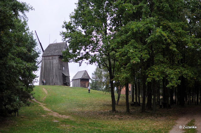 Kompleks dookoła jeziora jest bardzo rozbudowany - w Dziekanowicach znajduje się Wielkopolski Park Etnograficzny, gdzie na sporej przestrzeni można wybiegać nieletnią (tym razem z przyjaciółką w podobnym wieku, co oznacza dwa razy więcej biegania). Wprawdzie ostatnio hasłem sztandarowym jest fraza "nuda, nuda, nuda", ale w skansenie były wiatraki (typu koźlak), które służyły do radosnego obiegania i wspinania się po schodkach, ślimaki ("ja chcę wziąć go do domu" - wyemitowała starsza H., co nie wzbudziło radości jej rodziców), kołyski i łóżka w ładnie wyposażonych domach z różnych epok (na które z kolei atak przypuszczała młodsza H., lat niespełna dwa), kozy i owce (wiadomka) oraz studnia. Studnia okazała się hitem - wprawdzie starsza H. wydawała okolicznościowe piski przy zaglądaniu do studni, że wpadnie i się boi, ale mimo to obie kilkakrotnie kazały dokonywać pobrania wody wiadrem w celu rytualnego wylania. Nie wiem, jakim cudem były w miarę suche. A, i kot był, ale nietowarzyski. Na terenie jest restauracyjka, można herbatę, żurek, pyrę z gzikiem i chyba niezłą - sądząc z reakcji współjedzących - lokalną smażoną rybę.