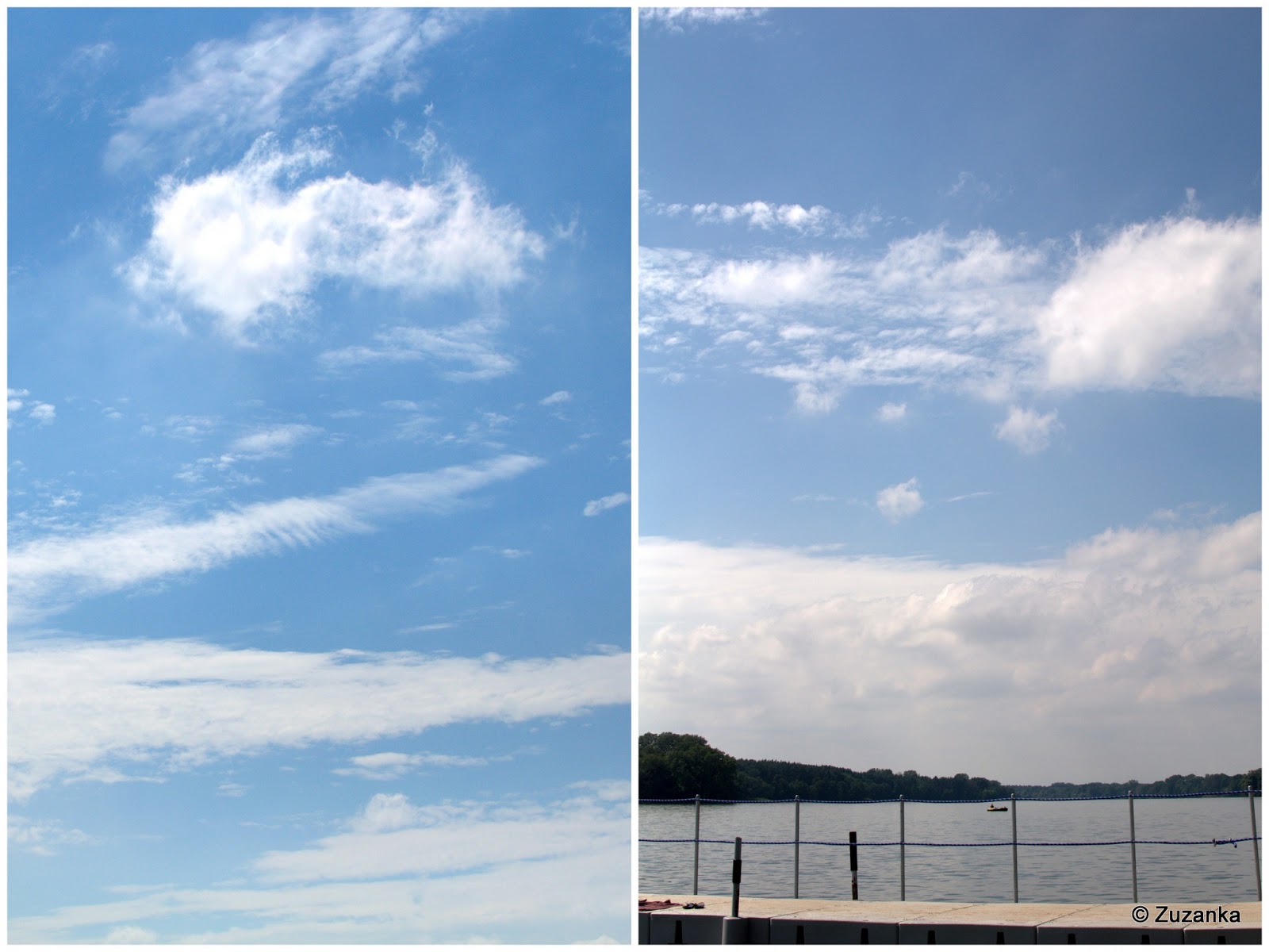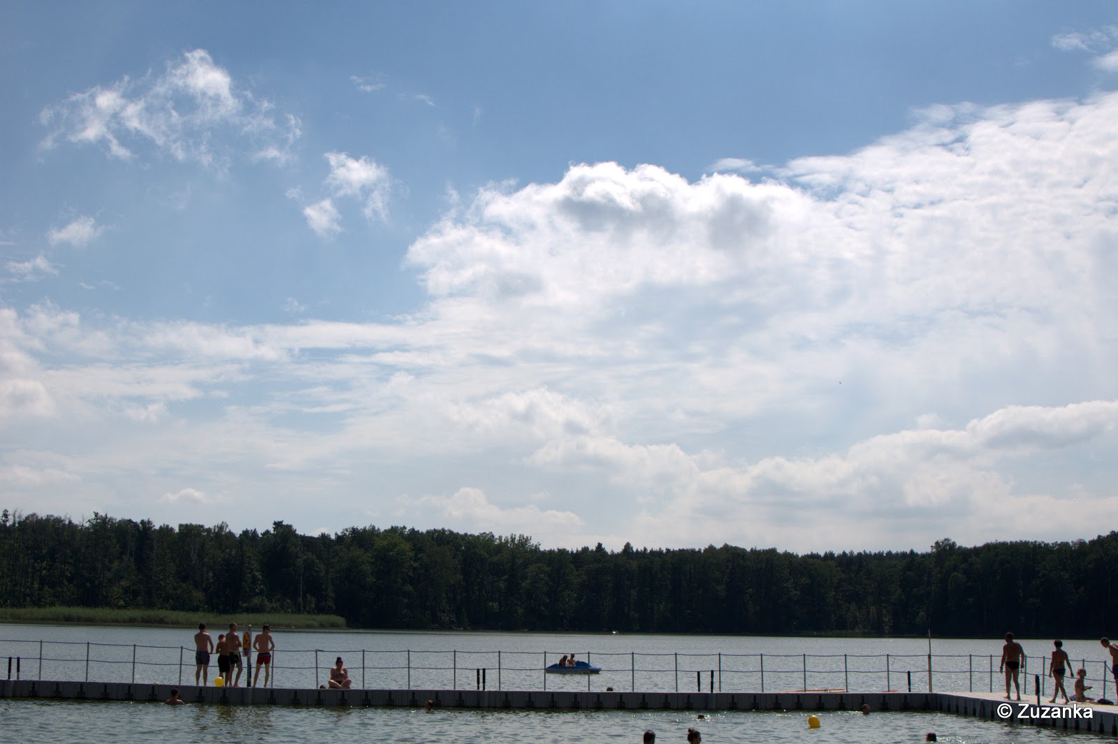 Wprawdzie nie w weekend, ale w tygodniu, pozwoliłam się wywlec nieletniej nad ostatnio ulubione jezioro w Lusowie. Wprawdzie skręciłam w nie ten zjazd na rondzie ("Mamusiu! Tam będą patykowilki!"), ale do jeziora jedzie się łatwo, trzeba minąć kościół i lekko w lewo. Za pomostem kaczki, przed pomostem ważki, ciepła woda i piasek.