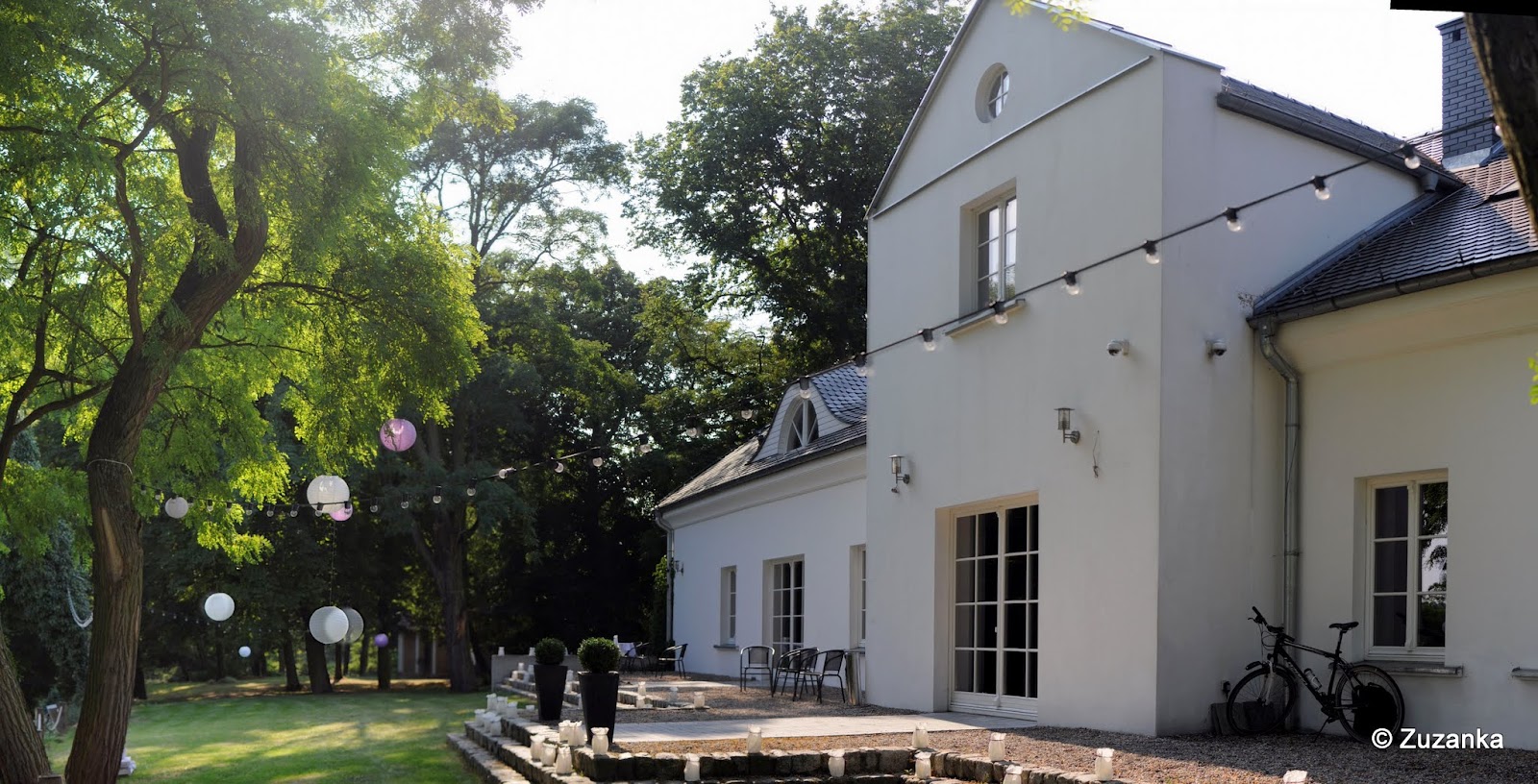 Współpracownik TŻ-a w zaproszeniu na ślub poprosił o to, by słońce grzało. Nie wiem, czy spodziewał się 37 stopni, ale słońce się przejęło i grzało należycie. Ślub odbywał się w podpoznańskiej Wierzenicy, w dworku Augusta hrabiego Cieszkowskiego; prześliczny, niewysoki budynek pośród zieleni, z zarośniętym rzęsą stawem i improwizowanym in promptu gazebo. Maj ślubem zachwycony, bo panna młoda w bieli, płatki kwiatów i lizaki dla gości, a do tego można zawsze ożywić uroczystość, ciskając do wody patyki, co jest nawet lepsze niż widok całującej się pary ("mama, pocałowali się!"). Na stanie był mały czarny kocurek, co też nie pozostawiło nas obojętnymi. Chociażby dla mruczącego kocurka można, nawet jeśli się nie planuje ślubu w plenerze.