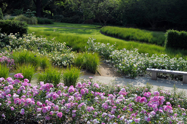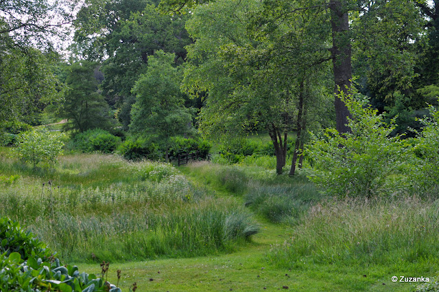 Niby w Unii jest system metryczny, ale odległości w Anglii dalej są podawane w jardach i milach[1], a powierzchnia w akrach. Musiałam sobie przeliczyć, jak duży jest Savill Garden i wyszło, że całkiem duży (35 akrów = 140 tys. m2[2]). I nie dość, że duży, to obłędnie piękny. Pachnący różami, pełen brzęczących owadów, kwiatów (ciągle jeszcze kwitły azalie!), łopiany wyższe od człowieka i ptactwo. Oswojone, miejscami nachalne. Kaczka prowadzi kaczęta, gęś - nieco ostrożniejsza - syczy na ludzi, bo może chcą uprowadzić jej przerośnięte potomstwo, ale tak się odwraca, żeby tę chrupkę kukurydzianą chwycić. Tylko wiewiórek nie ma. Obiecywali wiewiórki, że w Anglii jak splunąć, a tu żadnej. Owce na poboczu - jasne. Nawet króliki widziałam koło lotniska. Ale wiewiórki - null, niente, nada.