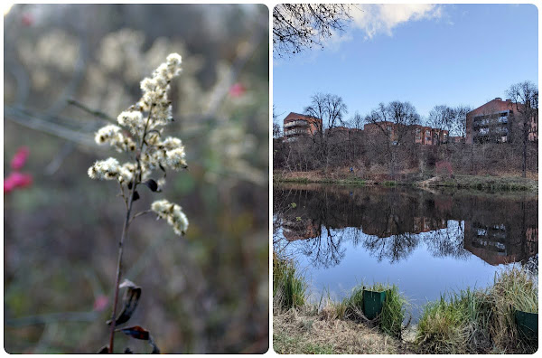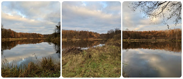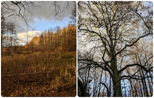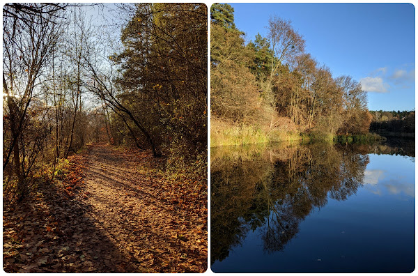 1 listopada w tym roku był szczególnym dniem cieszenia się życiem - słoneczny, ciepły, prawie że na gołe nogi, chociaż się nie odważyłam. Obrzucanie suchymi liśćmi, w termosie miałam herbatkę, na którą nikt nie miał ochoty (poza mną, bo ja zawsze). Może kiedyś mi się uda obejść cały staw, na razie doszliśmy bez protestów do huśtawki. Z perspektywy 8 (ósmego!) dnia w zamknięciu, marzę, żeby wyjść gdziekolwiek. Śni mi się nawet, że gdzieś jadę, ale cała w strachu, wszak może właśnie dziś jakaś służba sprawdzi, czy posłusznie przestrzegam ZOMZ? (jeszcze nikt nie sprawdził, #państwozkartonu).