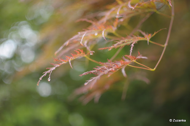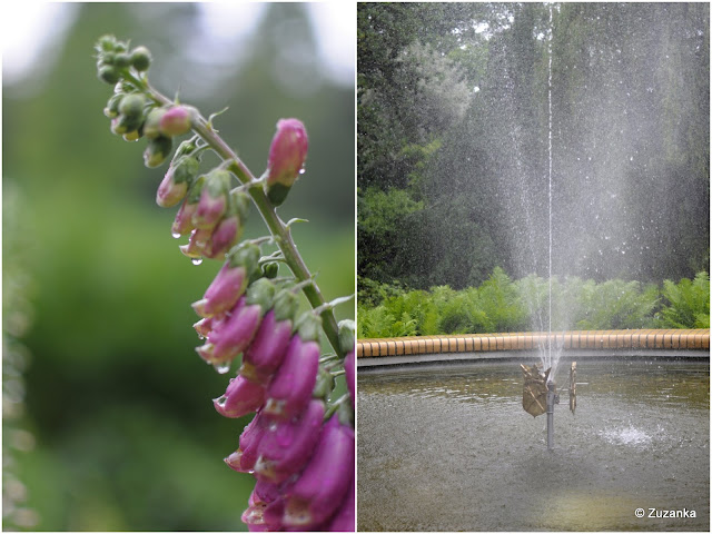Dzień zaczął się od dylematu: iść spać czy - mimo ulewy - wyprowadzić nikonka na spacer. I wierzcie mi, decyzja była trudna. Duch ochotny po raz kolejny wygrał z ciałem mdłym (może to wpływ tego, że całe przed- i popołudnie spędziłam nad rozważaniami nad ideą realizowania zadań w celu ich zakończenia, a nie pracy jako takiej). Ale choć ubłociłam pantofelki i zmokłam, to nie zmarzłam, bo deszcz był prawie że tropikalny i pasował do przymglonej, chłodnej zieleni ogrodu. Mała oranżeria z sukulentami i storczykami; obstawiona przez nadmiernie poważnych młodych ludzi ze sztalugami, a w środku pachniało liśćmi i egzotycznymi kwiatami. Na zewnątrz, już w słabiej lub bardziej padającym deszczu, przechodziłam przez zielone tunele z liści, schylając się do kryształowych kropel na pajęczynie i do subtelnych płatków w odcieniach od bladej żółci do ciemnej fioletu. Żal tylko, że irysy zdążyły przekwitnąć, bo zauroczyły mnie nazwy odmian przy pozostałościach irysowego stada - Dot and Dush, Pixi Dixi, Heart Breaker, Shery Poetry, Glacier Kiss, Dusky Challenger czy All That Jazz (brzmią jak nazwy lakierów do paznokci OPI). Wspominałam, że chcę ogród z irysami?
