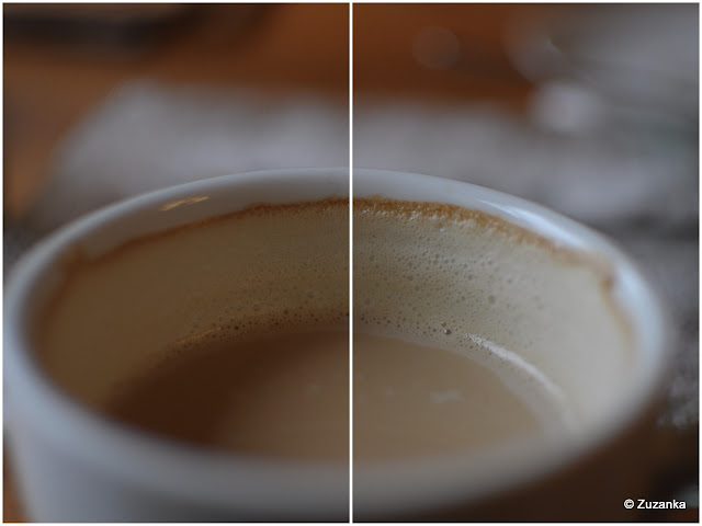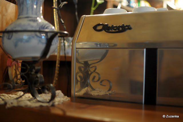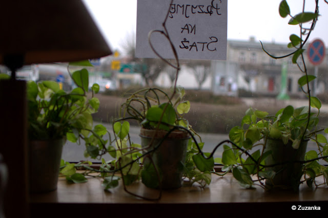 I wreszcie kruszwicka kawiarnia "Pod Malwami". Jakoś tak się składa, że każdym razem jedziemy w deszczu, tym razem też nie było inaczej. Maj zawinszował sobie herbaty, my kawy. Na ścianach malwy i ptaki, porcelanowe filiżanki i podobno można dostać śniadanie, jak się je sobie zamówi wcześniej telefonicznie. Domowo bardzo; z kuchni wyjrzała starsza pani i zapytała kelnerki, czy wstawić już ziemniaki. Zupełnie przypadkiem wybrane miejsce, okazuje się, że to centrum życia kulturalnego - bywają poeci, muzycy i inni, którzy coś umieją. W sobotnie przedpołudnie akurat jedyną atrakcją był Maj, ale myślę, że wieczorami więcej się dzieje. Dobre miejsce na przystanek w drodze.