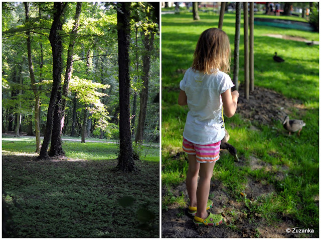 Cashew zaprowadziła nas nad jezioro, które - co ciekawe - jest w samym centrum Wolsztyna. Idzie się z Rynku (na którym jest fontanna ze światełkami, więc można nie dojść, jak ktoś łasy na fontanny) i WTEM już się jest na jeziorem. Brzeg jeziora zagospodarowany jest tak, że Poznań, Miasto niby Know How, jednak długo nie dotrze do tego etapu - alejki, kwiaty, trawa, spacerowe podesty wśród drzew. Nastawiłam się na piknik i z tego nastawienia konsekwentnie nie wzięłam kosza piknikowego, więc - jak zwierzęta - jedliśmy plastikowymi nożami. Mimo to był świetny piknik, tym bardziej, że przyjechała Dees (skąd mamy takie dorosłe dzieci nagle?!).